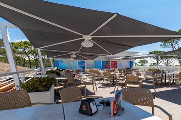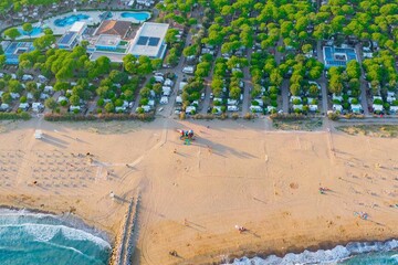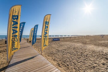 Het strand dat rechtstreeks aan de camping grenst, is rustig en schoon. Sinds 2006 wappert hier dan ook een blauwe vlag. Dit zal liefhebbers van vakantie aan zee en vooral gezinnen met kinderen geruststellen.
