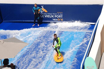 • Surfmaschine mit 4 Bahnen, auf denen man erste Erfahrungen im Surfen, Wakeboarden, Bodyboarding oder Tubing sammeln kann. Einmalig auf einem 5-Sterne-Campingplatz in Frankreich!