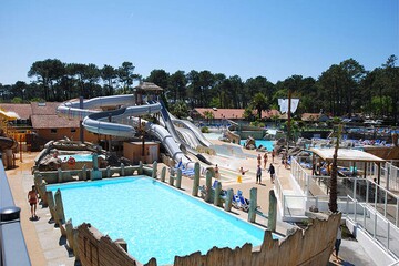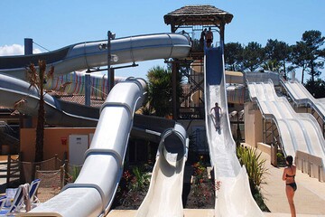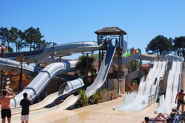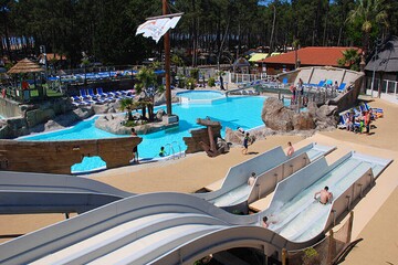 Erleben Sie mit der beheizten XXL-Schwimmbadanlage jede Menge Emotionen. Es erwarten Sie 11 Rutschen, ein Wellenbad, ein Aquasplash-Bereich für Kinder, der 100 % Fun verspricht, und auch ... eine Surfmaschine für Gleitfans! Das gab es noch nie auf einem 5-Sterne-Campingplatz!