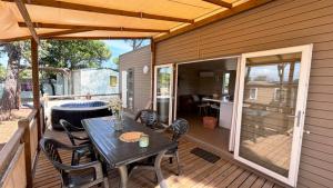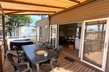 - Semi-covered raised wooden terrace