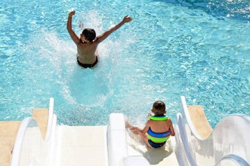 Observez vos enfants s'amuser dans nos toboggans et pataugeoire.