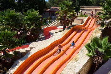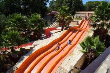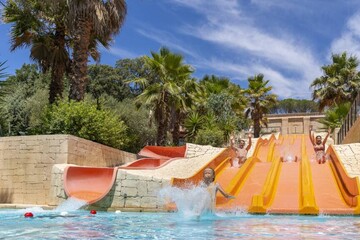 Le parc aquatique de notre camping les Cigales comprend de nombreux bassins, il est composé de :