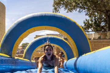• Toboggans géants qui dévalent une pyramide maya : 4 pistes de toboggans de 35 m et 1 piste de 75 m en boucle