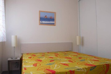 Cet appartement de 50 m² environ(*), est composé d'une chambre avec lit double (160x200), une chambre avec 1 lit simple (70x190) et 1 lit gigogne (70x190), un salon avec 1 canapé convertible 2 personnes (140x190), une kitchenette équipée avec lave-vaisselle, une salle d'eau avec douche, lavabo, WC et lave-linge. La télévision et le WiFi (pour 1 seul et même appareil) sont offerts.