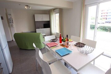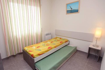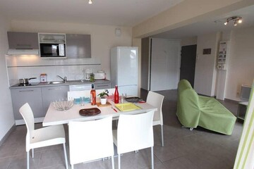 Appartement de 39 m² environ(*) avec balcon ou terrasse, composé d'une chambre avec lit double (160x200), une chambre avec 1 lit simple (70x190) et 1 lit gigogne (70x190), un salon avec 1 canapé convertible 2 personnes (140x190), une kitchenette équipée avec lave-vaisselle, une salle d'eau avec douche, lavabo, WC et lave-linge. La télévision et le WiFi (pour 1 seul et même appareil) sont offerts.
